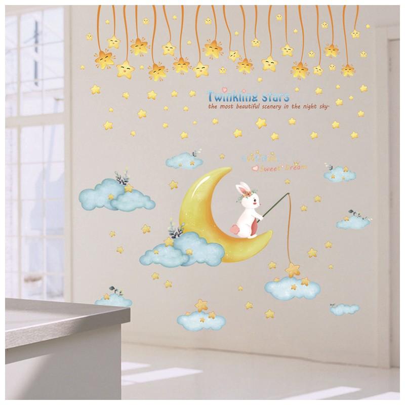 ウォールステッカー 壁紙シール リメイク 壁デコシール雲の上可愛いうさぎちゃん 自由にデコレーション ウォールステッカー 壁紙シール リメイク 壁デコシール雲の上可愛いうさぎちゃん 自由にデコレーション シンプルなデザイン きらきら星と月 送料無料 アニマル 子ども